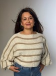 Sweter w odcieniu beżowym z delikatnymi paskami to idealny dodatek na chłodniejsze dni. Wykonany z miękkiego materiału, zapewnia komfort i ciepło. Luźny krój oraz szerokie rękawy nadają mu modny, casualowy charakter. Świetnie sprawdzi się w połączeniu z jeansami lub spódnicą, tworząc stylową, codzienną stylizację.